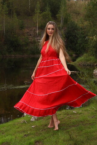 Ткань хорошего качества, натуральный лен, красивый цвет, большемерят, на 52 размер, наверное, можно брать на пару размеров меньше, очень широкое, но такая задумка. Платье Талия очень красивое, спасибо производителю.