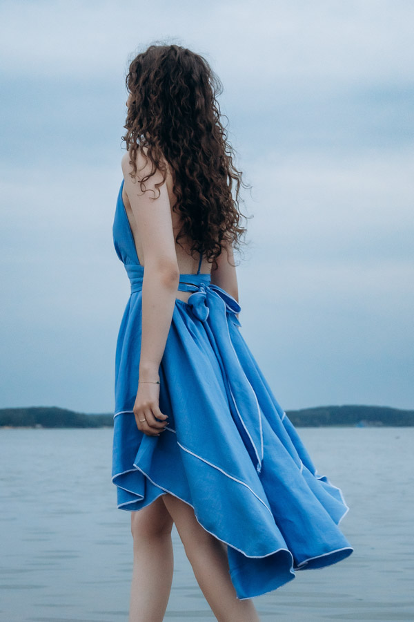 На снимках фотографы Дина Статкевич и Анастасия Черкасова постарались передать яркое сочетание мягких тонов и легких силуэтов, которые словно родное небо, передают свободу и лёгкость. Каждая модель платья, сарафанчика, туники или комплекта из льна выглядит словно часть природы, сливаются с настроением неба, которое стало вдохновением для этой коллекции.