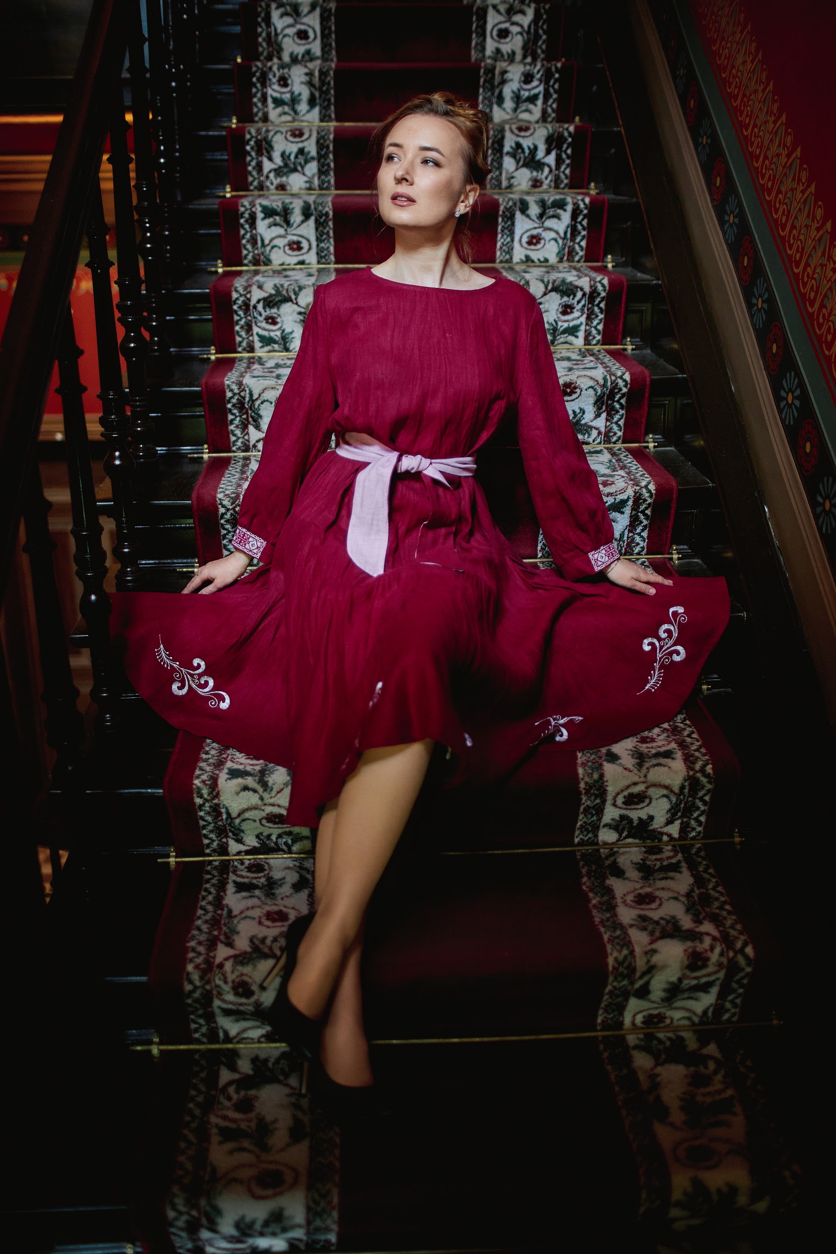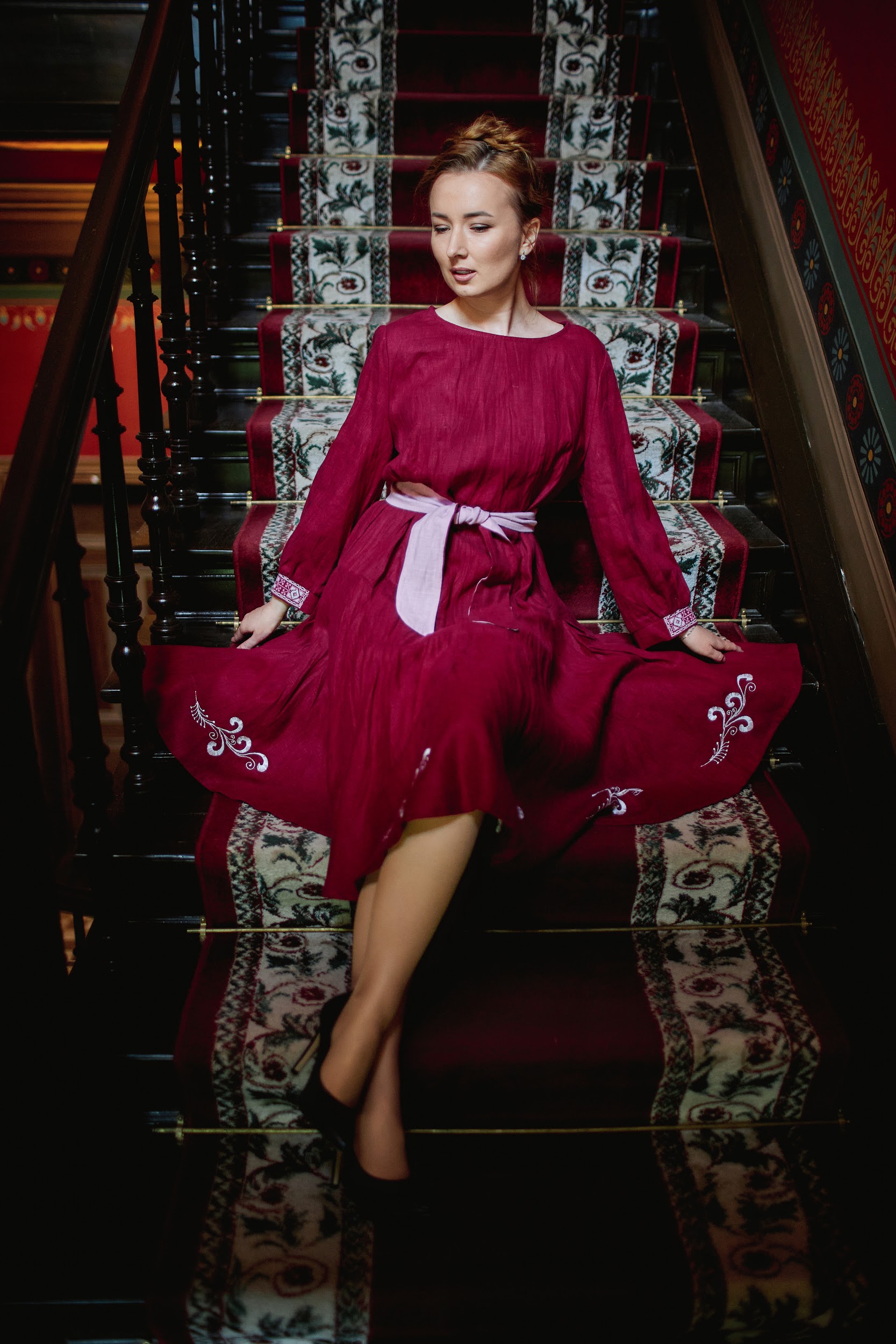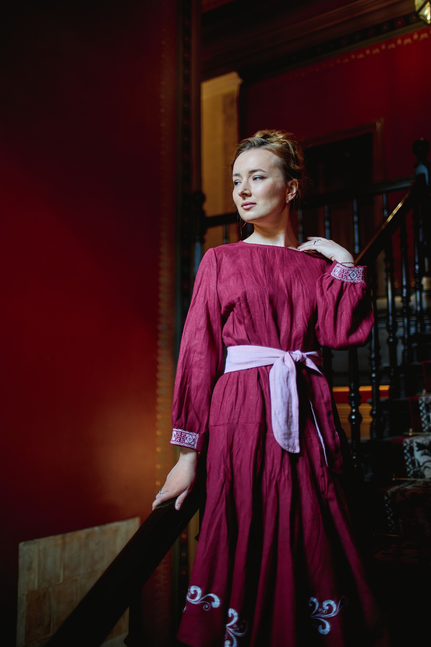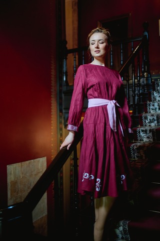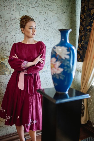 Анна. Платье льняное с вышивкой под пояс PL-422617. LinenBy.by
