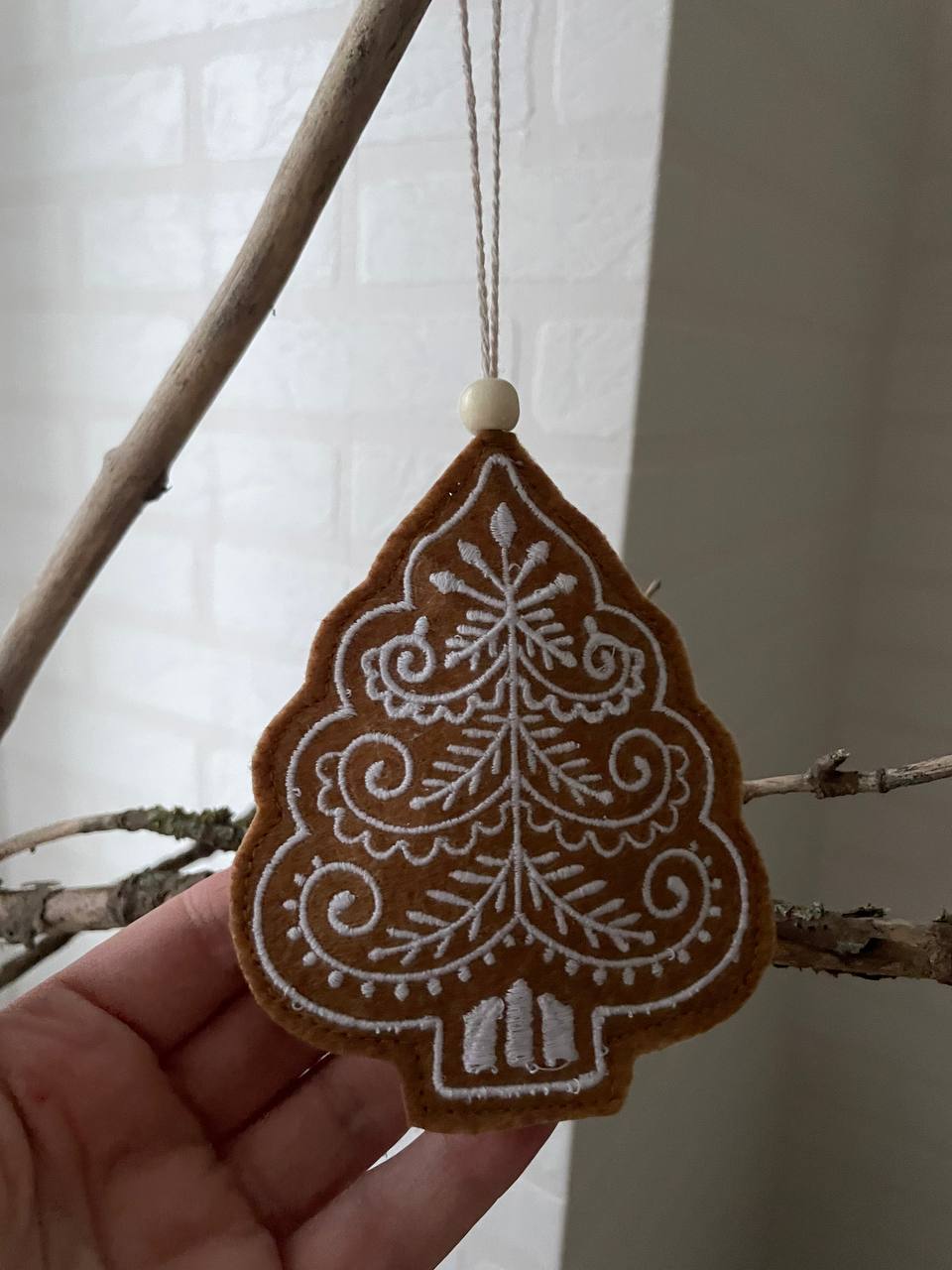 Ёлочка пряничная. Подвеска из фетра с вышивкой TSF-251124-Midi-linenby.by
