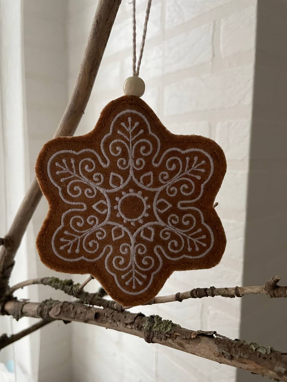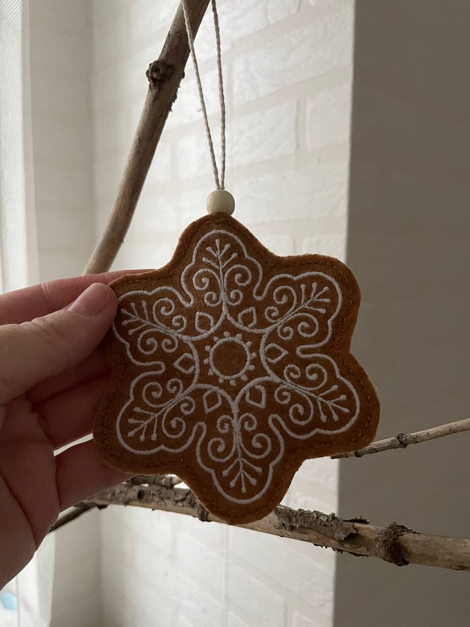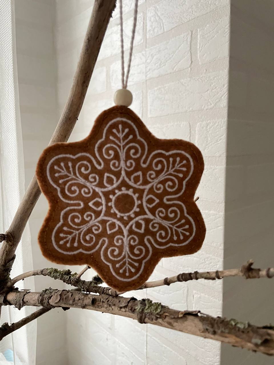 Звезда пряничная. Подвеска из фетра с вышивкой TSF-251123-Midi