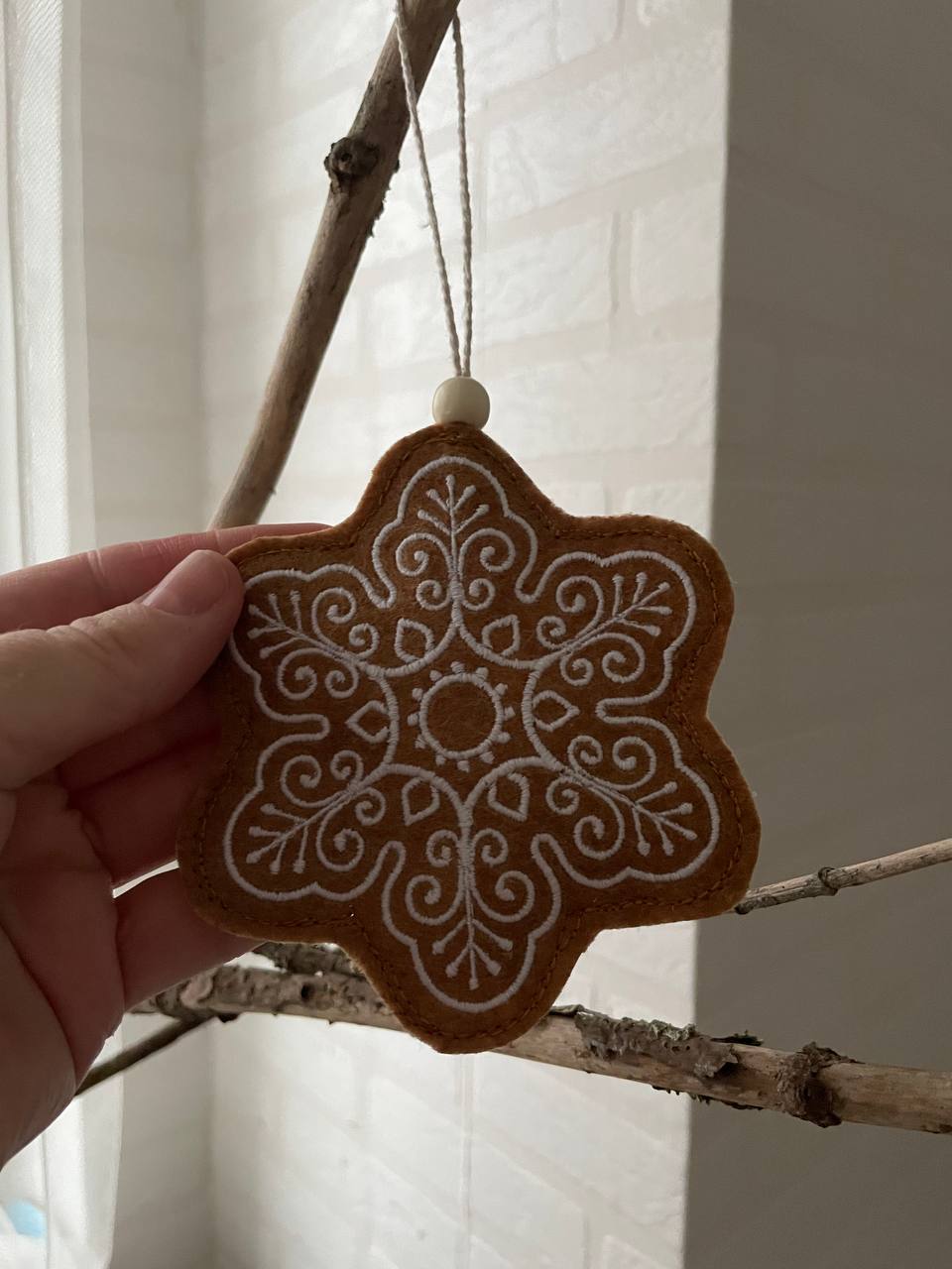 Звезда пряничная. Подвеска из фетра с вышивкой TSF-251123-Midi-linenby.by