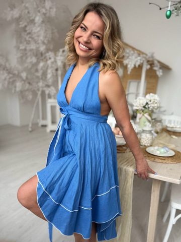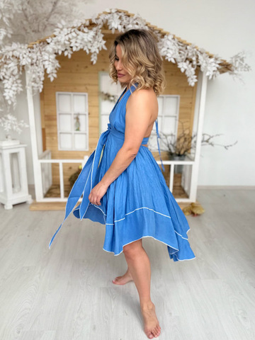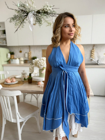 Сарафан Ласточка в "Льняном сундучке". Сарафан выполнен из натурального льна смотрится ярко, свежо и женственно. Длина-миди, асимметричная. Тонкие бретели, открытая спинка. Сарафан А-образного силуэта, с отрезной юбкой полу солнце. Пояс подчеркнет летящий силуэт. Романтичный образ для жаркого дня и теплого вечера.