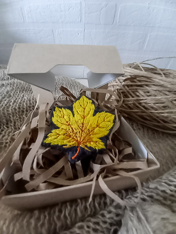 Кленовый листок-желтый. Брошь-вышивка. Артикул: BV-25-60