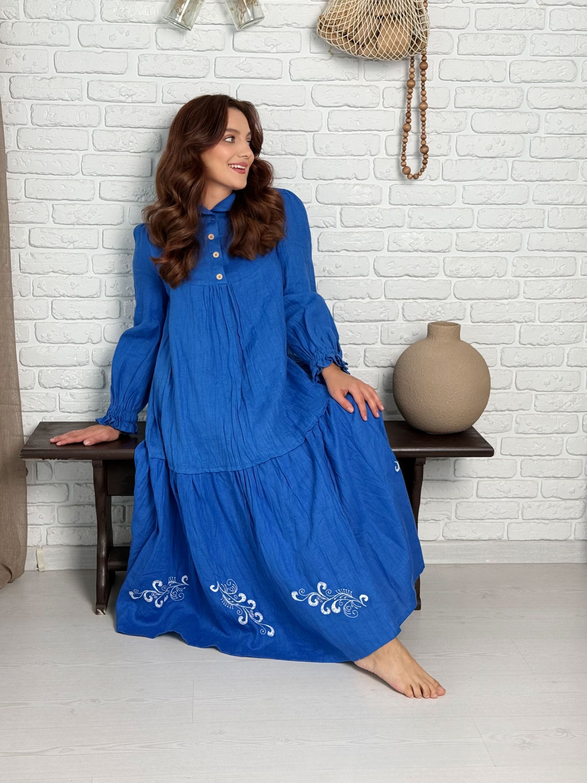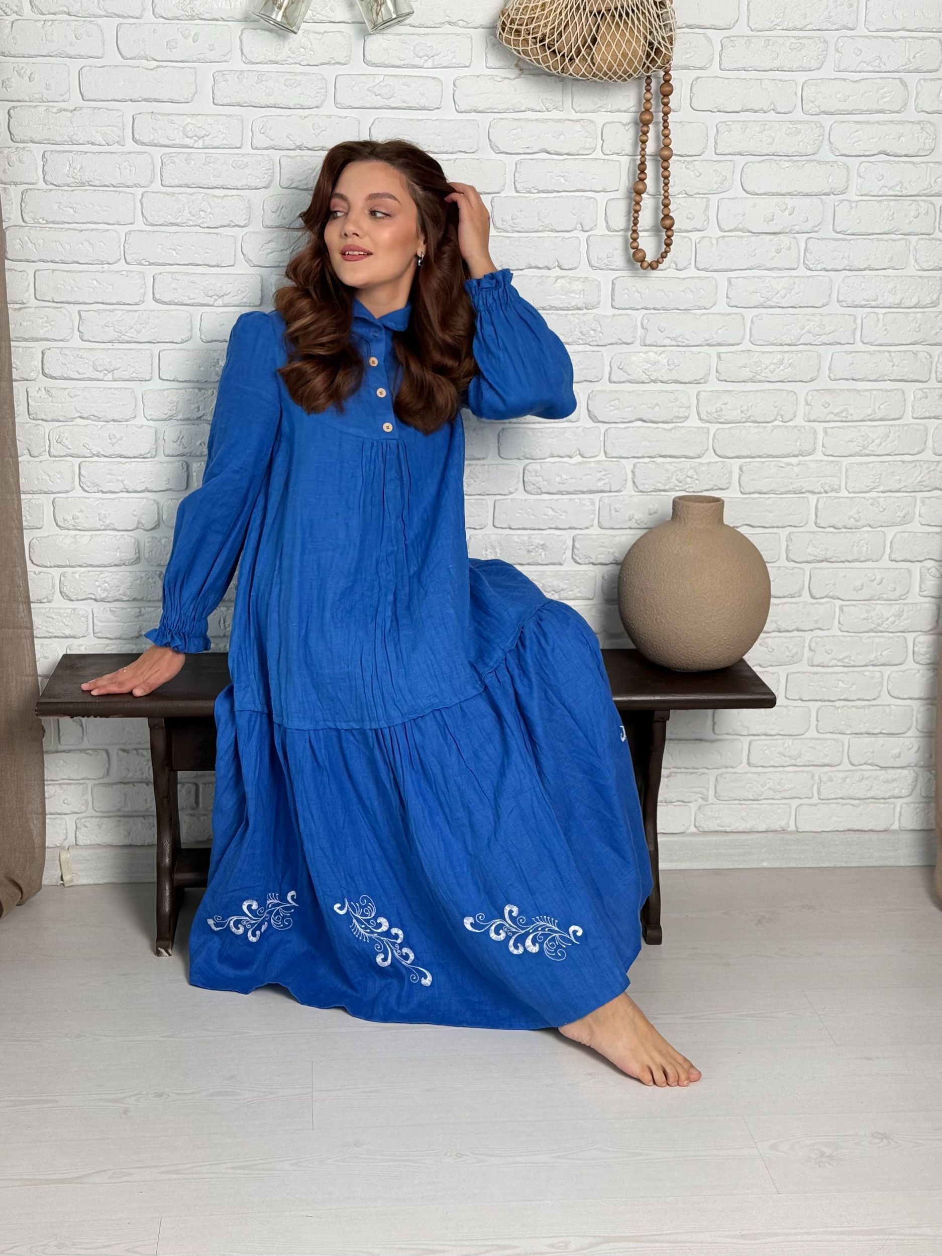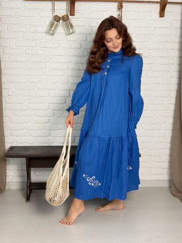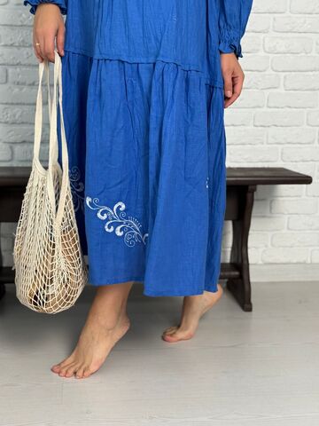 Любавушка. Платье льняное в пол с вышивкой по низу PL-422574 LinenBy