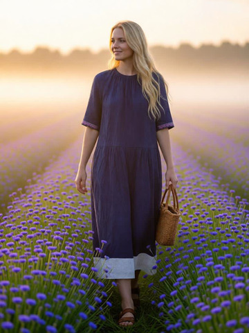 Платье женское, рекомендовано для младшей и средней возрастных групп, выполнено из натуральной льняной ткани.