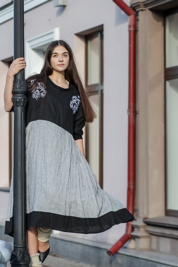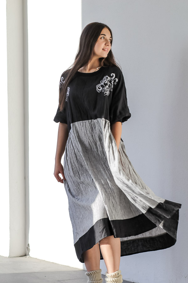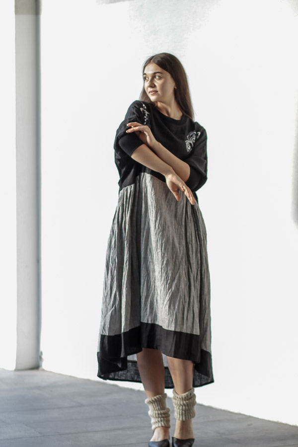 Настенька. Платье комбинированное с вышивкой PL-422570 linenby.by