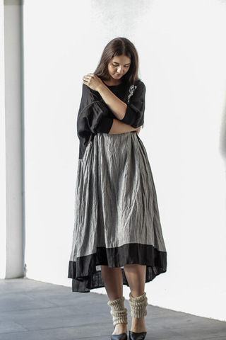 Юбка отрезная на мелкую сборку из отделочной льняной ткани.
