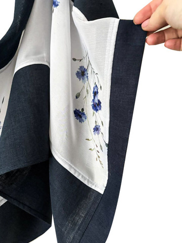Именно наша авторская модель палантина от марки LinenBy, выполненного из натурального 100% льна, который комбинируется с различными материалами идеально справляется с этой задачей. Ярким декором в модели является авторская, ручная печать на ткани, которая освежает образ и делает Вас уникальной обладательницей авторской вещи.