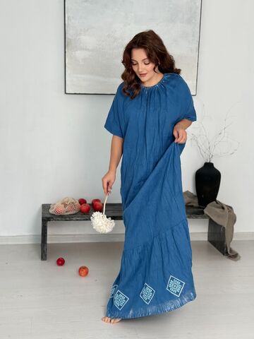 Радонька. Платье льняное макси с вышивкой в этностиле PL-422571 LinenBy
