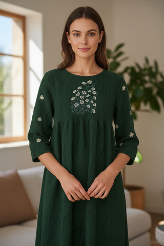 Платье Ромашка от марки LinenBy — хороший выбор для повседневной носки. Платье имеет свободный крой обеспечивают комфорт и свободу движений, что делает его идеальным для отдыха и путешествий. Рукава 3/4 с втачным покроем добавляют легкости. Вышивка в виде мотива "Ромашки" на рукавах и центральной части переда придаёт платью уникальность и изысканность. Благодаря универсальному дизайну, это платье можно легко сочетать с различными аксессуарами, создавая разнообразные образы на каждый день.