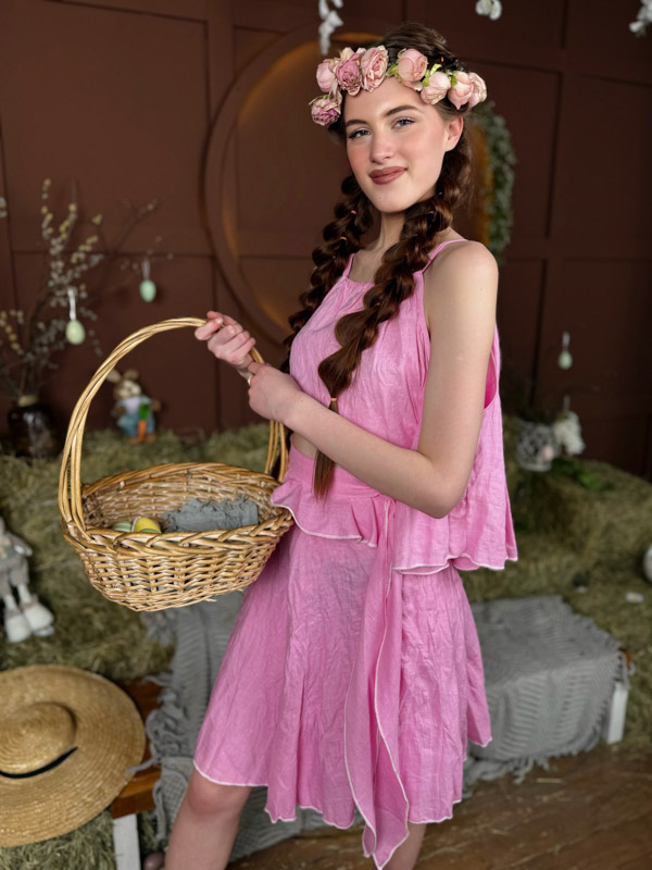 Юбка из льняной ткани "Розовый рассвет" в "Льняном сундучке", создана для девушек, которые ценят романтику. Оборка на талии и завязки добавляют нежности в образ. Женственная юбка способная украсить любой образ и сделать Ваш день немного счастливее.